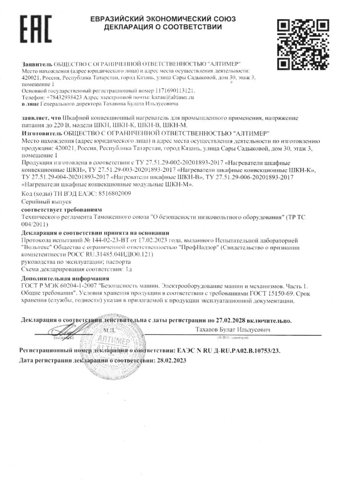 - Шкафной конвекционный нагреватель (220В-200Вт выводы – 0,4м.ШКН-220-200) - 1 шт.