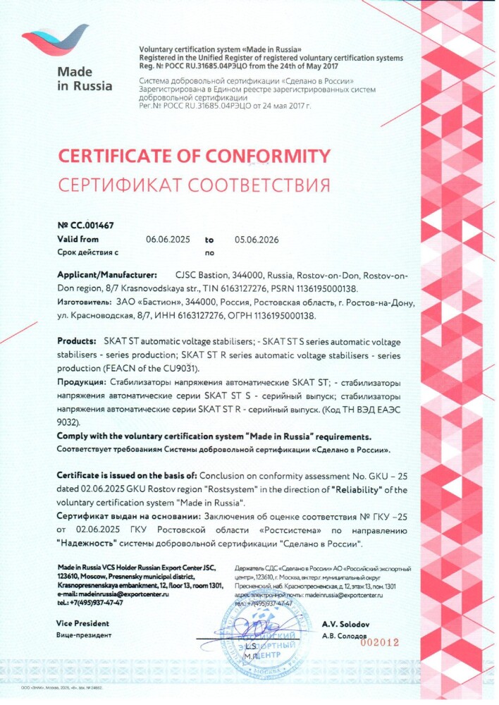 - Всепогодное исполнение. Стабилизатор защищён от влаги и пыли, работает при температуре от -30 до +45 °С.