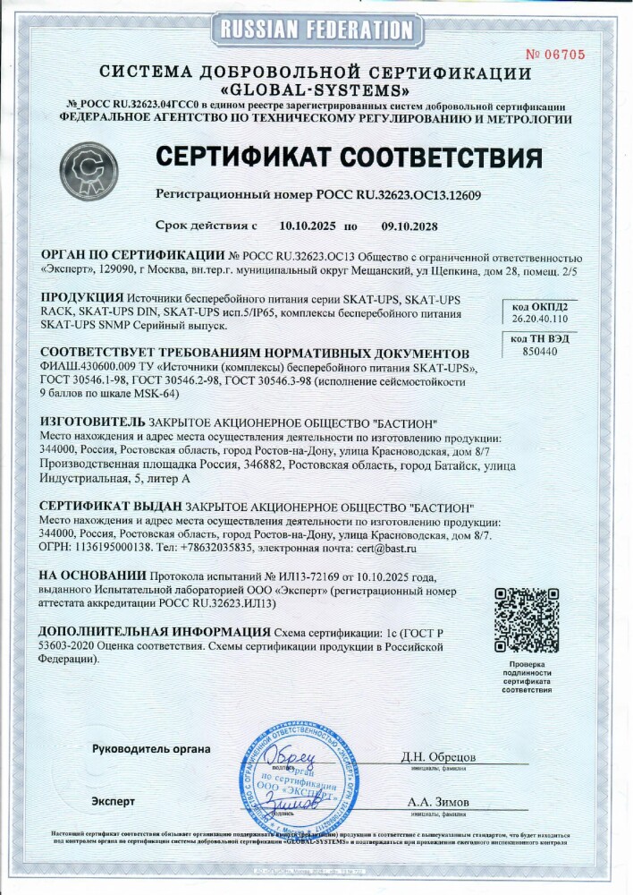 | Частота, Гц: | Основной режим работы: 46 - 54 или 56 - 64; Режим работы от АКБ: 50 / 60 ± 0,1 |